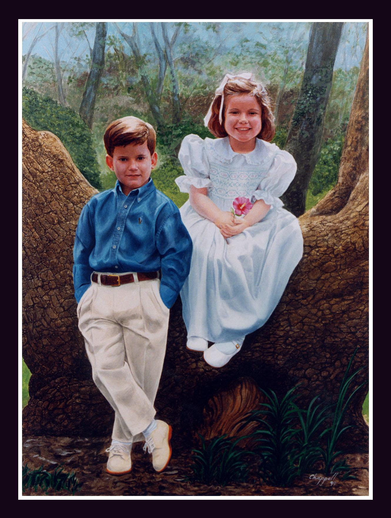 CHILDREN Caroline and David New Orleans, LA OIL PAINTED PORTRAIT (this is