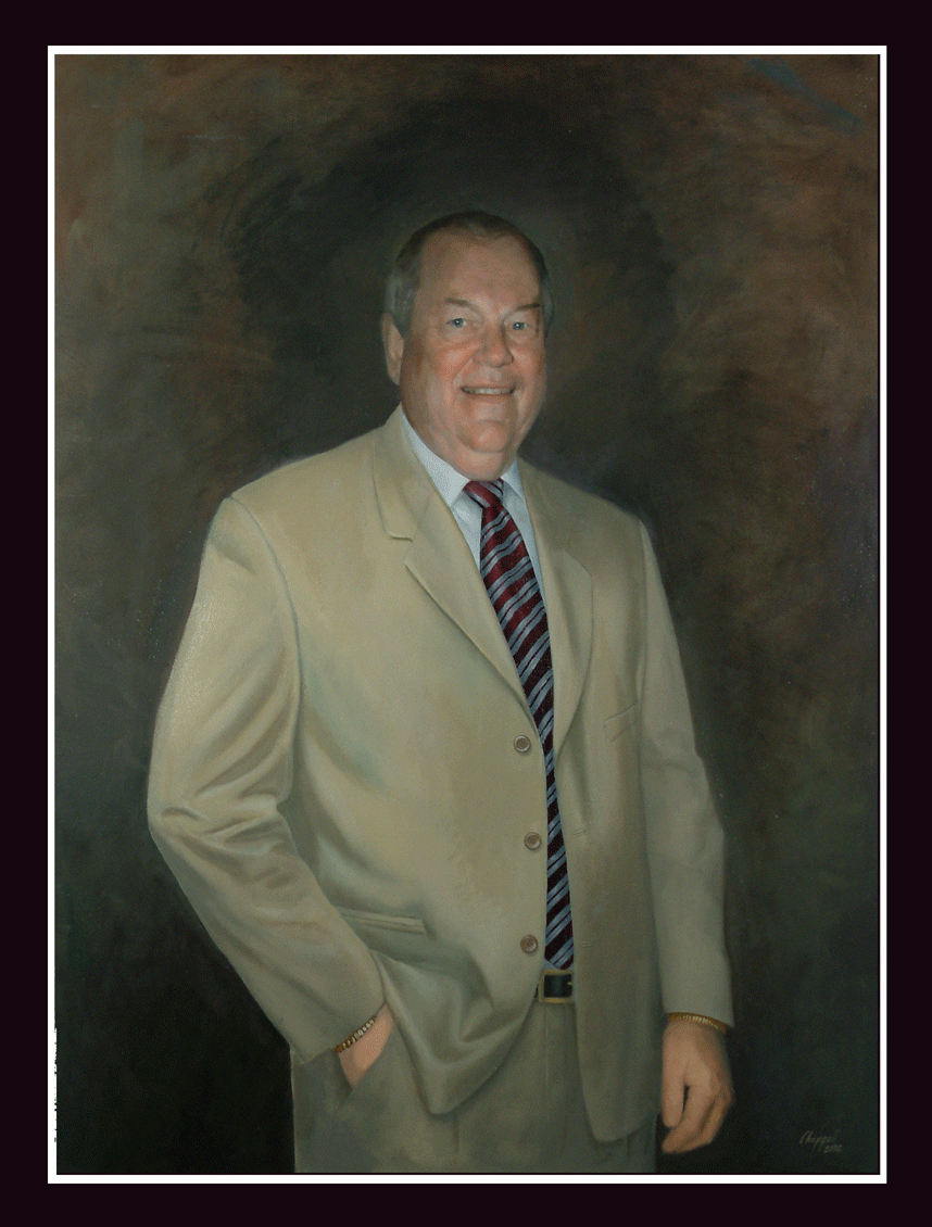 a very large oil painting. CORPORATE OIL PORTRAIT Oil Painting of Dr. Jim Slagle,